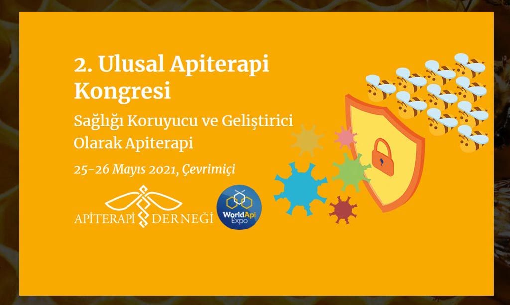 Apiterapi Derneği tarafından düzenlenen ve ana teması “Sağlığı Koruyucu ve Geliştirici olarak Apiterapi” şeklinde belirlenen 2. Ulusal Apiterapi Kongresi, 25-26 Mayıs 2021 tarihleri arasında çevrimiçi olarak gerçekleştirilecek