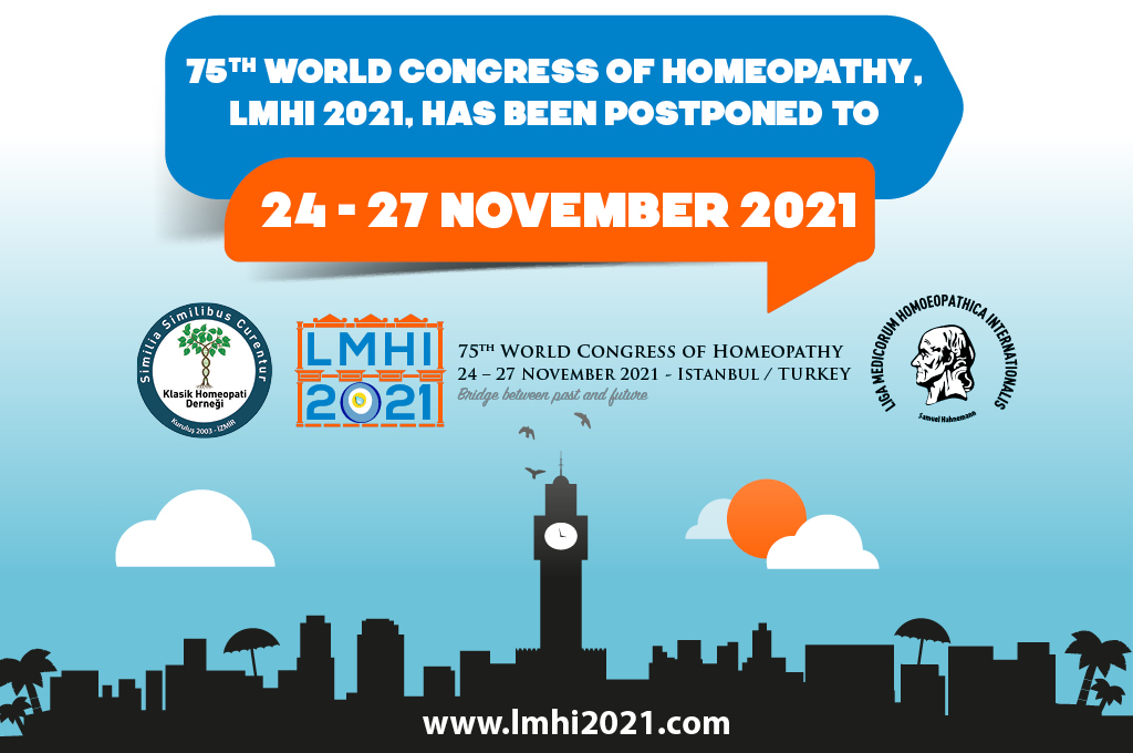 HOMEOPATHY 2021, the 75th World Congress of Homeopathy to be held in Istanbul, Turkey on 24-27 November 2021