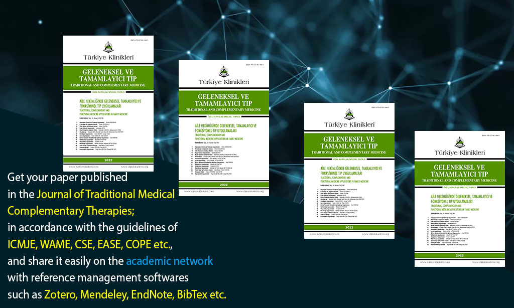 The special issue on Traditional, Complementary and Functional Medicine Applications in Family Medicine for the Journal of Traditional Medical Complementary Therapies (J Tradit Complem Med) released via the Turkiye Klinikleri platform on 26 December 2022. In addition, the scientific articles published in the journal are also available in pdf format.
