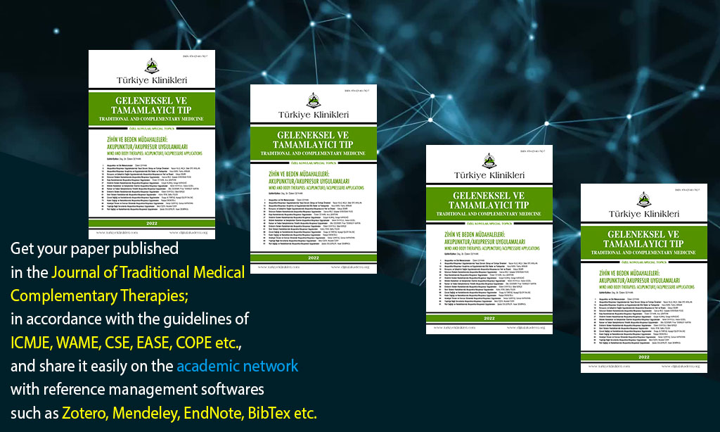 The special issue on Mind and Body Therapies: Acupuncture for the Journal of Traditional Medical Complementary Therapies (J Tradit Complem Med) released via the Turkiye Klinikleri platform on 27 September 2022. In addition, the scientific articles published in the journal are also available in pdf format.