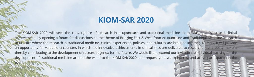The Korea Institute of Oriental Medicine (KIOM) and the Society for Acupuncture Research (SAR) will hold the 2020 KIOM-SAR International Conference online from 11 (Fri) – 13 (Sun) Sept., 2020.