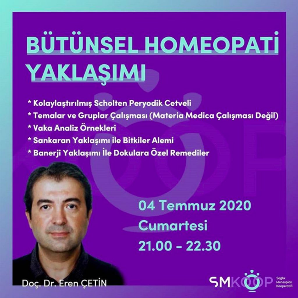 Bütünsel Homeopati Yaklaşımı (Webinar) başvuru ve kayıt için: https://smkoop.org.tr/doc-dr-eren-cetin/
