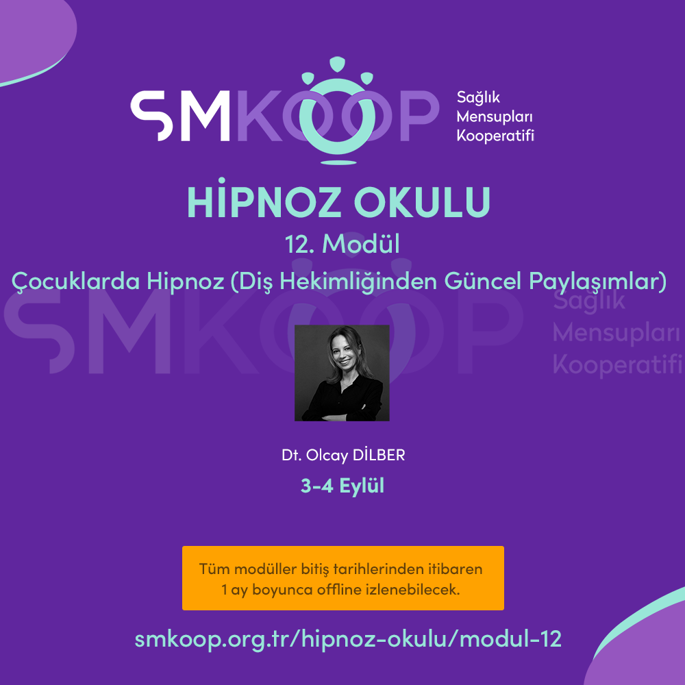 Hipnoz Okulu-ÇOCUKLARDA HİPNOZ (Diş Hekimliğinden Güncel Paylaşımlar) MODÜLÜ (12. Modül) başvuru ve kayıt için: https://smkoop.org.tr/hipnoz-okulu/