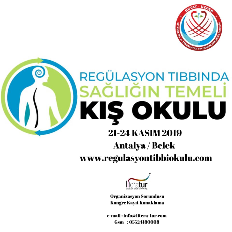 Biz GETAT-UZDER olarak, meslektaşlarımızı bu alanda da bilgilendirme hamlemizin 1. sini bu yıl 21 – 24 Kasım 2019 tarihlerinde, Regülasyon Tıbbında Sağlığın Temeli Kış Okulu organizasyonu ile başlatmış bulunmaktayız. Bu 1. kursumuzda, öncelikle regülasyon tıbbı nedir, nasıl uygulanmalıdır; hipoksi, disbiyosiz, oksijensizlik ve oksijenin önemi; candida albicans, bağırsak florası ve geçirgenlik; yaşam şeklimizi düzenleyebileceğimiz alkali beslenme, alkali su; minerallerin, enzimlerin ve aminoasitlerin sağlığımızda ne kadar önemli olduğu vb gibi hususları, alanında son derece değerli olan hocalarımızın katılımları ile sizlere sunacağız.Regülasyon Tıbbında Sağlığın Temeli Kış Okulu organizasyonumuzun bu alanda atılan önemli bir adım olduğu inancıyla, katılacak olan sağlık profesyonellerimize şimdiden başarılar diliyoruz.